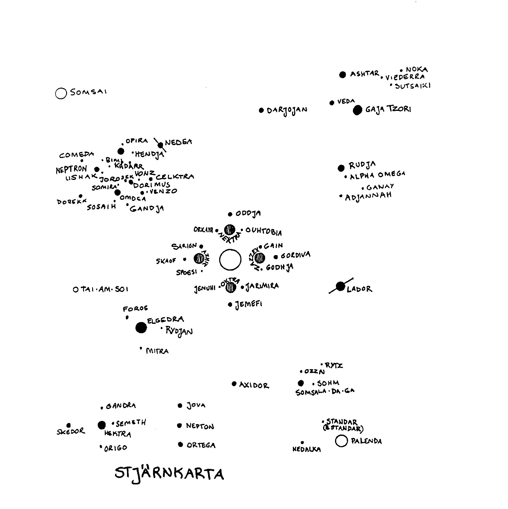 Stjernekart over det romområdet hvor Oktra befinner seg.